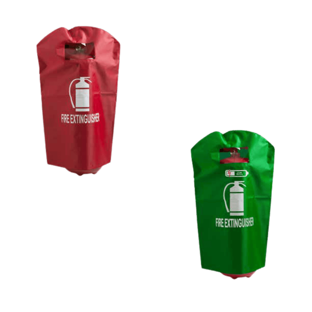 Cappucci protettivi per estintori normali e carrellati, ideali per proteggere da pioggia, polvere e agenti atmosferici. Disponibili nei colori rosso e verde.