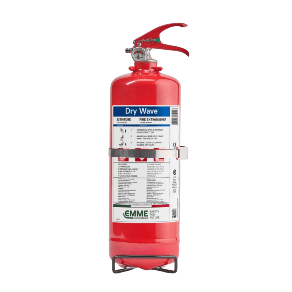– Estintore a polvere da 2 Kg , temperatura di utilizzo da -30°C a +60°C, costruito in accordo alla norma UNI EN 3-7 (D.M. 7.1.2005), approvato Marine Equipment Directive MED 2014/90/UE, certificato secondo la direttiva per attrezzature a pressione PED 2014/68/UE, realizzato in conformità ai controlli di produzione secondo norma EN 3-10.